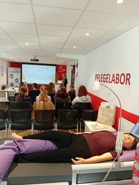 Nach einer Einführung mit den wichtigsten Inhalten der Pflegeausbildung wurde fleißig praktisch geübt. Puls- und Blutdruckmessung an den Mitschülerinnen sowie der Austausch über Erste Hilfe und die Aussagekraft der ermittelten Vitalzeichen rundete den Vormittag ab.